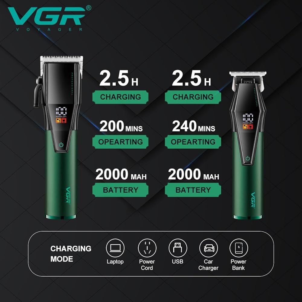Set komplet për prerje flokësh me shumë aksesorë, ekran digjital dhe fuqi të lartë.