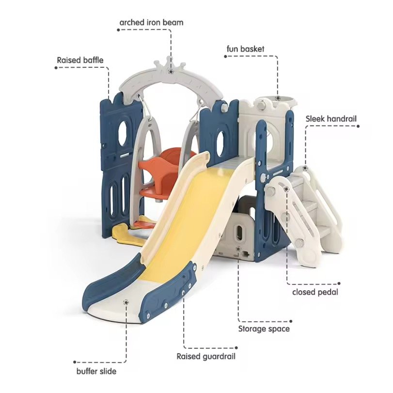 Seti i madh i lojërave për fëmijë me përmasa 185x221x106 cm përfshin rrëshqitëse, platforma dhe zona loje që stimulojnë lëvizjen, krijimtarinë dhe shoqërimin mes fëmijëve. Me ndërtim të qëndrueshëm dhe dizajn tërheqës, ky set është zgjedhje perfekte për ambiente të brendshme ose të jashtme.