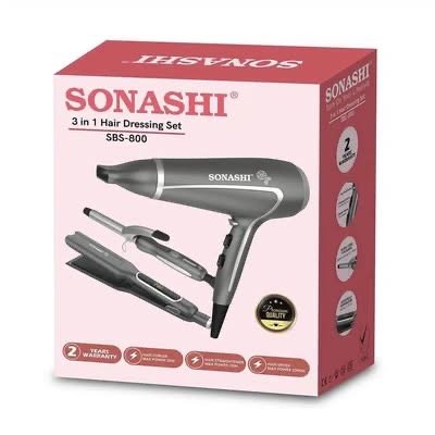 Set profesional Sonashi me tharëse, presë dhe ondulues për stilim të plotë të flokëve.