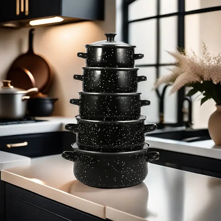 Set i plotë me tenxhere graniti anti-ngjitës, të përshtatshme për gatim të përditshëm.