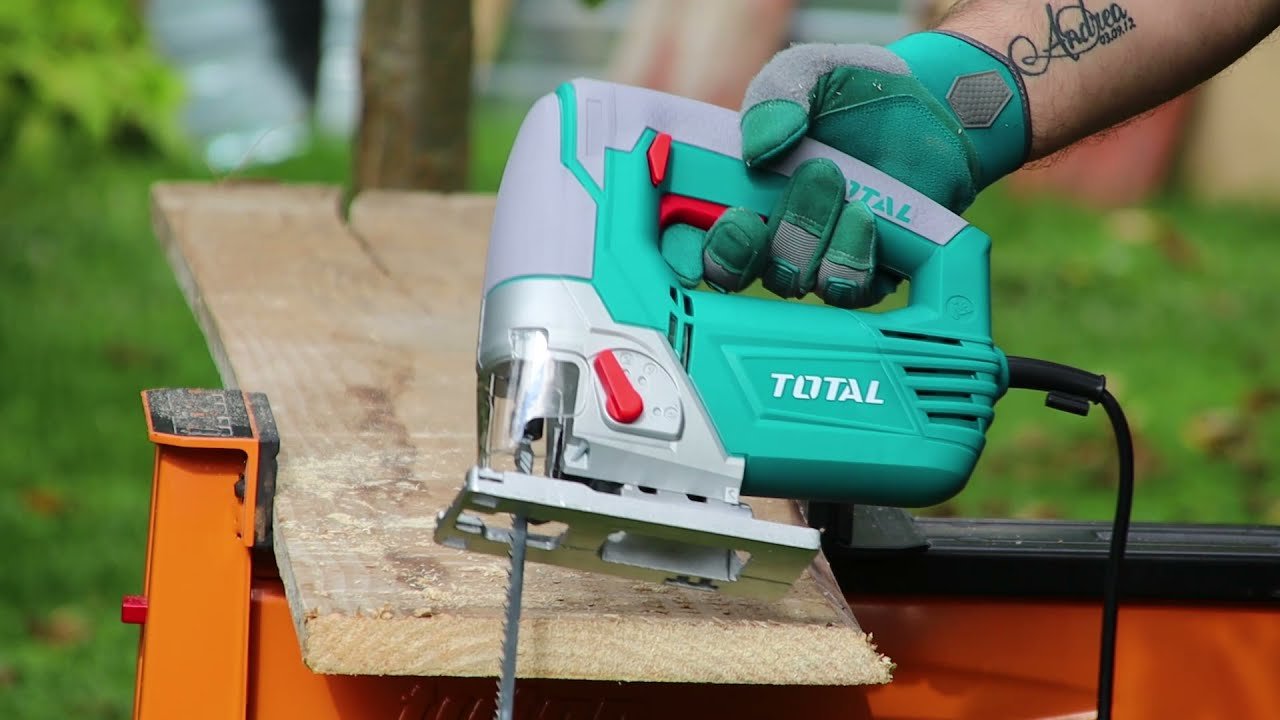 Sharrë vertikale TOTAL me motor të fuqishëm 800W për prerje të shpejtë dhe precize në dru, plastikë dhe materiale të tjera. Pajisja përfshin 5 tehe rezervë, sistem bllokimi për ndërrimin e tehut dhe dorezë ergonomike për përdorim të lehtë.