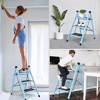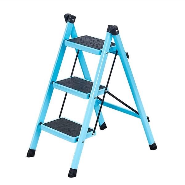 Shkallë metalike me 3 hapa, e palosshme dhe e sigurt me sipërfaqe antirrëshqitëse, ideale për përdorim në shtëpi.