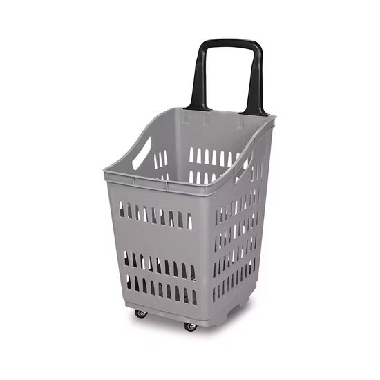 Shportë marketi e madhe me rrota, praktike dhe rezistente.