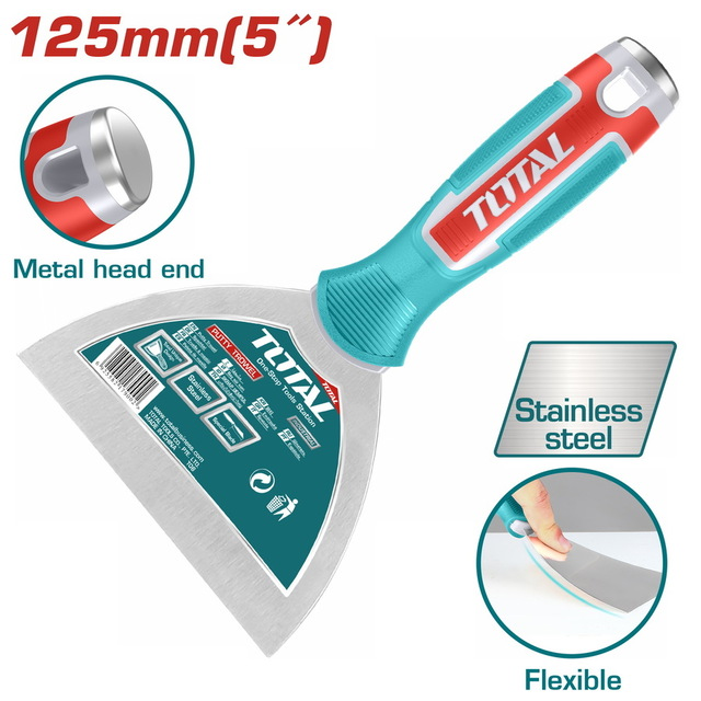 Spatul me teh të gjërë 125mm për mbulim më të madh gjatë pastrimit ose aplikimit të materialeve. Përshtatet për përdorime të rënda ndërtimi dhe renovimi.