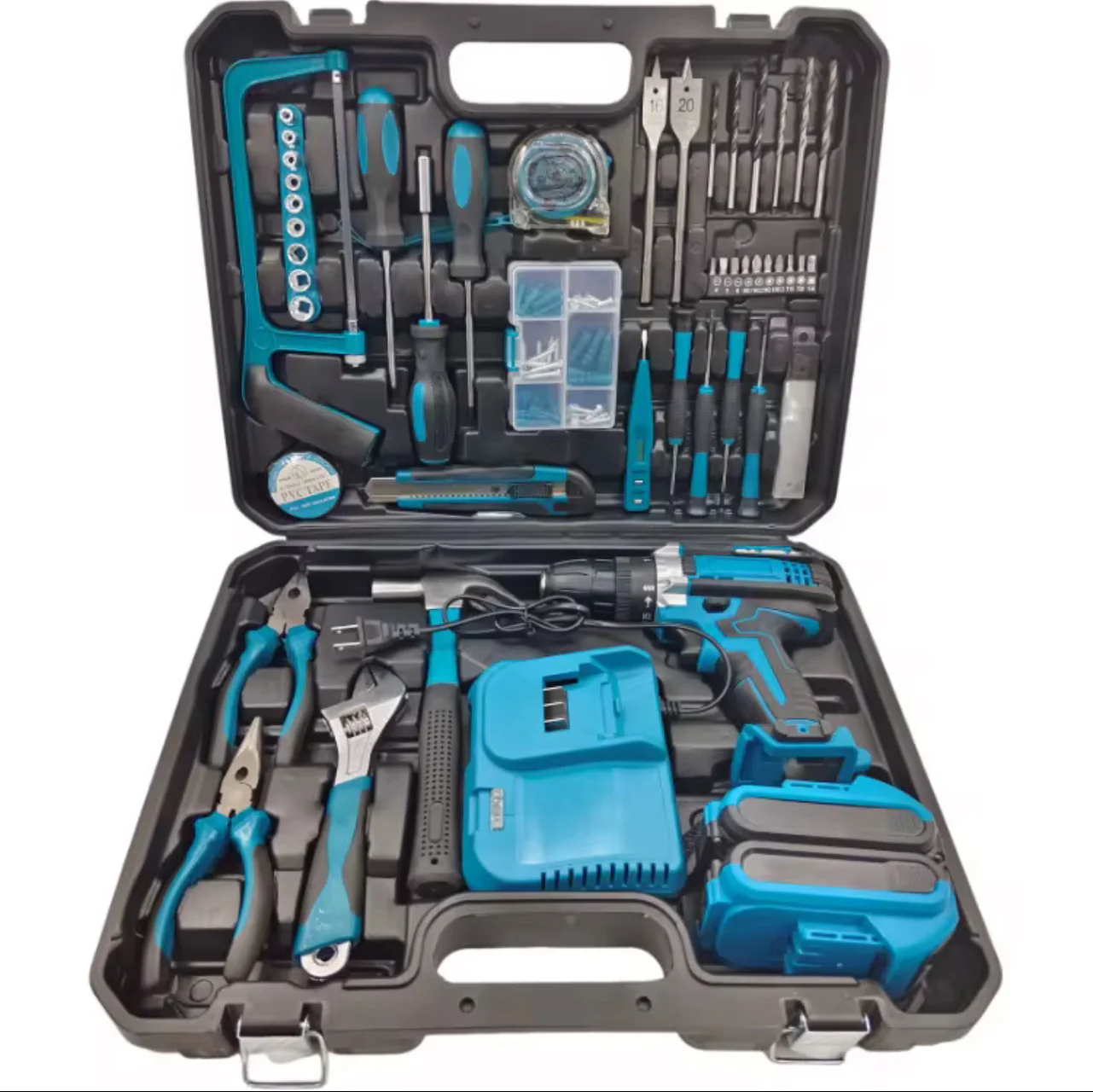 Kutia përfshin shpime, kaçavida, vida, çekiç dhe mjete të tjera.