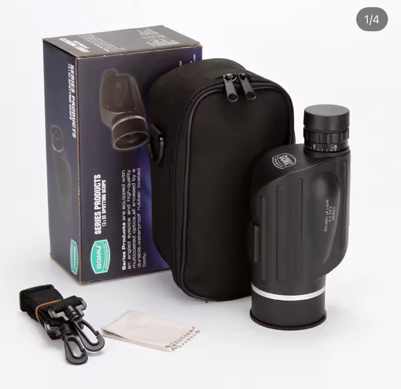 Teleskop me zmadhim të fuqishëm 13×50 dhe lente të qarta me shtresë shumëfishuese për pamje të detajuar e të ndritshme. Ideal për udhëtime, natyrë, sporte apo vëzhgime profesionale. Përfshin çantë mbrojtëse dhe rrip mbajtës për transport të lehtë.