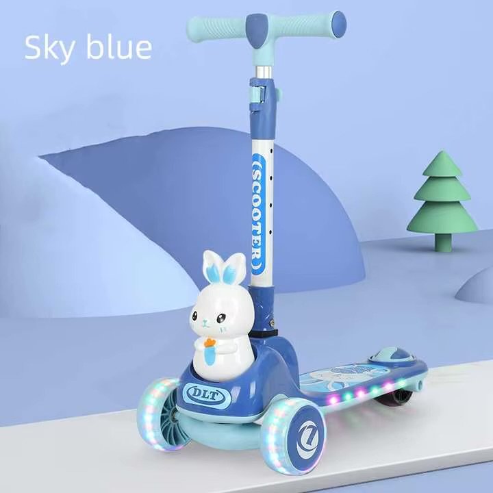 Trotinet i bukur dhe i qëndrueshëm për fëmijë, me dizajn lepurushi dhe rrota me drita. Struktura e fortë dhe doreza e përshtatshme ofrojnë përdorim të sigurt dhe komod. Ideale për shëtitje dhe lojë në çdo kohë.