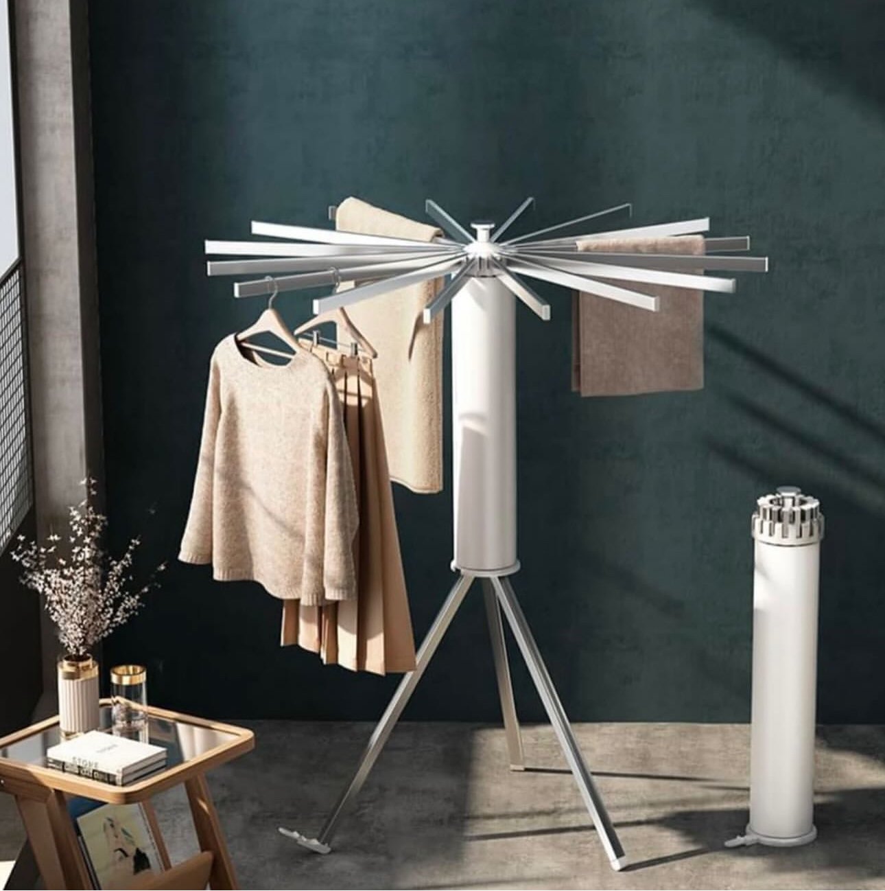 Dizajn modern dhe praktik për tharjen ose varjen e rrobave në shtëpi.