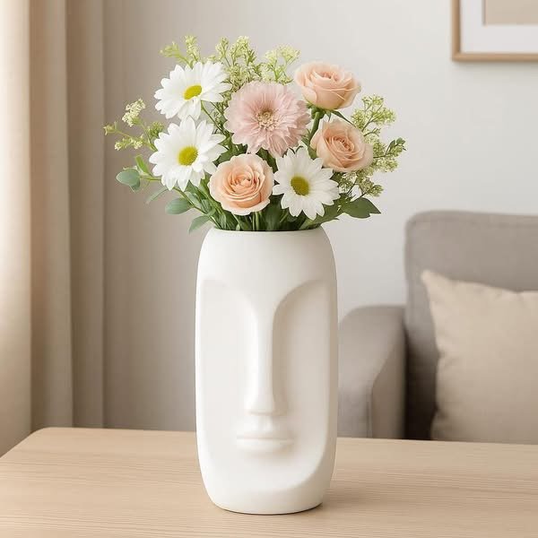 Vazo dekorative me dizajn fytyre, moderne dhe elegante për çdo ambient.