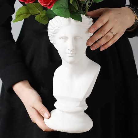 Vazo unike dekorative në formë busti klasik që sjell elegancë dhe stil në çdo ambient. Mund të përdoret për lule të freskëta apo artificiale.